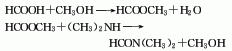 2.化學(xué)性質(zhì):在無(wú)酸、堿、水存在下,即使加熱到沸點(diǎn)也是比較穩(wěn)定的。在酸的作用下分解成甲酸和二甲胺鹽,而在堿的作用下則分解成甲酸鹽和二甲胺。